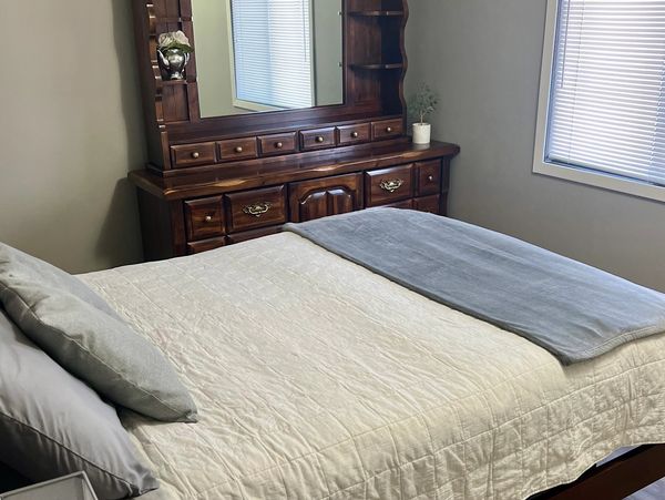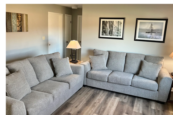 We have spacious 2 bedroom units with over 700 sq ft. Large bedroom has a queen sized bed. Smaller bedroom has a full sized bed. Our units are equipped with a full kitchen! 1 bathroom with shower/tub.